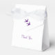 Secret Garden purple floral lovebirds, wedding favour box. Customise with your own personal thank you message and names. Designed to match our Lovebirds Secret Garden Wedding Collection.