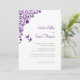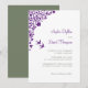 Woodland, secret garden purple floral wedding invitation design with lovebirds. Detailed floral pattern corner in thistle purple. Customise with your names in thistle purple script and your wedding information in dark sage lettering. Designed to match our Lovebirds Secret Garden Wedding Collection.