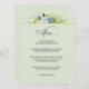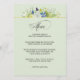 A charming floral menu card that coordinates with the "Secret Garden Rustic Wildflowers Wedding Collection. Delicate wildflowers in mixed watercolor hues of purple, blue, yellow, and white with vine-like greenery and forest twigs as accents. Simply edit the sample text with your menu items. Shown here with a light green background, you can edit this colour on both the front and back of the menu card by choosing "customise" and selecting a different background colour. A suite of matching products is available to carry out your garden theme.