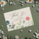 Secred garden wildflowers with a cute bird, elegant, whimsical frame with an ivory-white paper texture background, Customisable text message with an elegant-Thank you script typography.