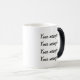The cup arrived on time and was awesome when morphed, but before there was even anything hot in the mug, you could see through to the writing. Make sure you use a really light color font...I don't know how it will look but dark colors will show through the blackness of the mug. Other than being see through, the print of my text looked awesome!