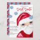 This fun Secret Santa Christmas party invitation features my hand painted classic Santa in red and white accented with blue poinsettias. The text is fully editable on the product page. Original art by Malissa Melrose.