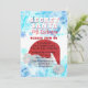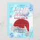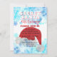 Snowflakes and Santa hat, blue Christmas gift exchange party invitation- Reads 'Secret Santa Gift Exchange' in fun, whimsical lettering at the top with a red shadow effect. Centred is a faux red glitter Santa Claus hat. Festive, scattered snowflakes at top and bottom on watercolor splash effect background in multi shades of blue, including sky blue, aqua blue, turquoise blue, and cornflower blue. It reads 'Please Join Us' in red letters with drop shadow. Rest of custom holiday party details are below. Back has matching solid turquoise background, which may be changed to any colour to match your holiday party decor. Note: All images are printed. Not actual glitter. There are different invitation paper choices, shapes, and sizes, too. Pretty snowflake winter holiday party invitations for your Secret Santa gift exchange party. Suitable for holiday office party, corporate holiday season events, tree trimming party, Christmas holiday open house party, snowflake Christmas theme, blue Christmas party, etc. Find more winter holiday party invitations in our Zazzle.com/angela65* shop.