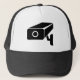 Security Cam trucker hat for video surveillance company. Custom caps for business employee, staff, co worker, monitor job, night guard, securer etc. Upload your own professional logo or sign optionally. Customisable colours.