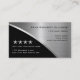 Security services business cards design template with modern four star symbol, silver tone design element, and black background colour you can customise or leave as shown. Designed for a security guard service, cybersecurity consultant, private security firm, or bodyguard.