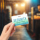 Simple, modern, blue, green and white ombre colour combination for horizontal ID badge, with large designation and without photo. It's easy to personalise and customise all graphic elements and text.