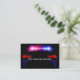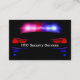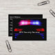 Security services business card template with image of a police patrol car with lights flashing and your business name featured on the front. Customise the design online and replace our text with yours. Created for a law enforcement, DUI defence Attorney, security patrol, or a Policeman who works off duty jobs.