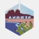 Sedona, Arizona travel illustration done in a retro style. Red Rocks, a winding river and cactus.