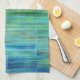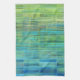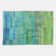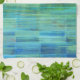 Colourful kitchen towel in blue, green, turquoise, and fresh hues resembling cool water or waterfalls in nature.