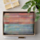 A multi-coloured, striped or streaked pattern. Colours include lighter blues and orangy reds overlapping each other in transparent watercolor strokes. Inspired by southwestern hues of the sky and ground.