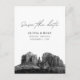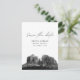 Modern Sedona black and white save the date postcard invitation on matte paper. The front showcases a stunning photograph, setting the perfect tone for your wedding day. Add custom text to make it your own. Enter the Zazzle design tool for additional design customisations. Automatically comes on matte paper. Adjust to semi-gloss if you prefer.