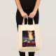 The printing came out very well, better than I had anticipated. The natural color fabric is sturdy with strong seams and comfortable handles. This tote fits easily over my shoulder. As it is filled, the bottom flattens out--very cool! I would buy this product again. This grocery tote holds a lot of groceries! The image quality was very good. The colors were a little darker than I had expected. The darkness may have been due to printing on a natural color fabric rather than on white. The cat design is attractively centered on the tote. The spirit of the design is very lively, just as it appears on the Zazzle website.