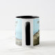 White and black 11 oz. ringer combo mug with an image, on both sides, of a watercolor painting of a young alligator that appears to be smiling for the picture and optional text. See matching candy jar, paper plate, square ceramic tile and coasters. See the entire Nature & Wildlife Mug collection in the HOME section.