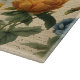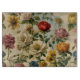 A lovely old-fashioned flowers over handwriting collage style print on a glass cutting board.