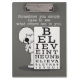 Little Boy stands behind a giant eye chart covering his eye with an occluder/paddle. The quote, "Sometimes you simply have to see what others see in you." The eye chart spells out the Little Boy, Big Dreams quote of "Believe in the Unbelievable that is You!" Quotes ©Little Boy, Big Dreams, LLC and David A. Carrizales and artwork © Christie Black of Creations from the Heart.