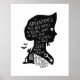 A hand-lettered quote from Jane Austen's "Northanger Abbey," in spooky lettering fit into a silhouette of a Regency lady and adorned with a skull, key and bats. Perfect for Austen fans, bibliophiles, Gothic decorators and people setting off on their own adventures.