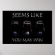 Seems like you may win. Closeup view of three overturned shot glasses with dices, tiles or dies inside each glass. Isolated against black background. Missing Impossible!