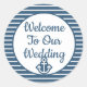 Perfectly preppy and chic customisable seersucker striped Welcome To Our Wedding sticker