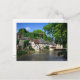 Postcard of the castle and the quaint historic village of Ségur-le-Château with its half-timbered houses alongside Auvézère river in Limousin, France.