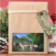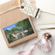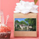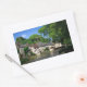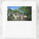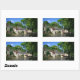 Rectangular souvenir photo sticker of the castle and the quaint historic village of Ségur-le-Château with its half-timbered houses alongside Auvézère river in Limousin, France.