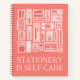 A collection of coral and red hand-drawn creative tools such as pens, sticky notes, watercolor palettes, washi tapes and more, with a quirky yet heartfelt phrase 'Stationery Is Self-Care.' This notebook celebrates the gentle magic of paper, pens and peaceful moments. Made for anyone who finds joy in a fresh notebook and peaceful journalling sessions. For those whose favourite aisle is the stationery section, who collect pens and washi tapes like treasures, and who love decorating their dot grid journal or planner. Creative supplies aren’t just for making things, they’re for slowing down, taking a breath and finding a mindful moment in the day. Thanks for viewing an Eria Daisy Art design!
