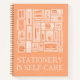 A collection of peach and orange hand-drawn creative tools such as pens, sticky notes, watercolor palettes, washi tapes and more, with a quirky yet heartfelt phrase 'Stationery Is Self-Care.' This notebook celebrates the gentle magic of paper, pens and peaceful moments. Made for anyone who finds joy in a fresh notebook and peaceful journalling sessions. For those whose favourite aisle is the stationery section, who collect pens and washi tapes like treasures, and who love decorating their dot grid journal or planner. Creative supplies aren’t just for making things, they’re for slowing down, taking a breath and finding a mindful moment in the day. Thanks for viewing an Eria Daisy Art design!
