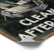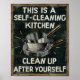 © Pela Studio / Wild Apple. A black and white retro image about kitchens. The sign says, "This is a self-cleaning kitchen. Clean up after yourself."