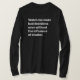 I love this shirt. I had written to the artist asking her if this picture was available on a shirt, and she wrote me back telling me where I could find the shirt. These shirts can be custom made to have a different saying. I loved this saying and went with it. The artist wrote me back later to tell me that she had seen my order go through. How's that for service? Pretty special. It's just as displayed. Perfect!
