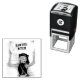 Ink Stamp featuring my original illustration of a woman holding up a sign, the sign can be customised with your own message.