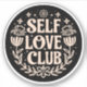 Self love club aesthetic sticker beige and black. Inspirational quotes to take care of yourself. Cute mental health lettering for women and girls stickers.