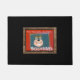 Cute self-portrait by the Naughty Nutty Squirrel. His funny face on green and red background. Oil painting-like. Wooden framed style - Door Mat.