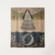 This tapestry features a woman who has just left her home on land behind after finding her selkie skin. The colours of the land are dull, symbolising how her life on land is not true to who she is, whereas the sea is colourful and vibrant, where she really belongs.