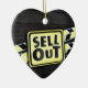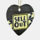 This artwork features a rectangular print set against a deep black background. At its centre, a bright yellow rectangle boldly displays the text "SELL OUT" in large, black letters. The yellow rectangle is tilted slightly, adding a dynamic element and creating visual interest. The edges of the image are rough or uneven, suggesting a hand-cut or distressed aesthetic that enhances its raw appeal.
