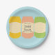 Create personalised paper plates for bridal showers and other parties. These fun paper plates feature simple illustrations of flavoued seltzer or soda cans in yellow, salmon pink, lime green and cream set against a light blue background. Enter your own text to create custom paper plates for any special event.