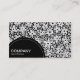 A business card template with a black semi-circular panel decorated with a white dotted line in the bottom left for your Company name and business type. The semi-circular panel is placed over a photo or artwork background (which can also be changed). Name and other contact details on the reverse.