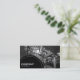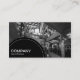 A business card template with a black semi-circular panel decorated with a white dotted line in the bottom left for your Company name and business type. The semi-circular panel is placed over a photo or artwork background (which can also be changed). Name and other contact details on the reverse.