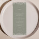 Elegant semi floral wildflower sage green 4x9" floral Wedding Table Menu Cards Flat Dinner Menu in modern script calligraphy. You can find a collection of matching items and size 5x7 on our store VelvetPaperCo.