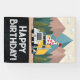Adorable Party Hat-Wearing Truck - At the heart of this birthday banner, an endearing yellow transport truck, adorned with a party hat, takes centre stage, embodying the spirit of celebration.