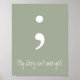 Semicolon & My story isn't over yet; printed on a poster.