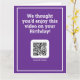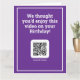 Send a video to anyone with a "video link" card. Create a Birthday video for your friend to enjoy! Send a Video by QR Code on a Birthday Card. Let others scan your QR Code With their mobile phones! Replace image with your own uploaded QR Code. Choose your video on apps such as YouTube, copy the share link, and paste the link into a QR Code generator such as https://www.qr-code-generator.com - then simply download the code and replace the code here with your newly created one. It's that simple.