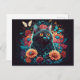This card is perfect for any occasion. It features a beautiful cat with flowers and butterflies around it, for those who love cats.