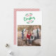 This photo Christmas card features the text: Sending Christmas Cheer. The word Christmas is in a trendy hand lettered script. The design is accented with hand drawn pine branches on a clean and white background. Customizable text and photo frame allow you to add your favorite family photo and your name. The backside is red and white stripes. Photography © Storytree Studios, Stanford, CA