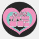 Sending Love Retro Heart Black Pink Mint Classic Round Sticker