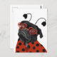 Spread love and joy with this Sending Love With A Cute Love Pug Postcard. The front showcases an adorable illustration of a black pug dressed as a ladybug, complete with a red and black polka dot shirt and heart-shaped sunglasses. This cute love pug is ready to share warm wishes and affection with the recipient.