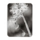 A black and white photograph of a Dandelion plant. The flower has gone and now the breeze is sending out the seeds for future growth.