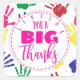 Show your gratitude with this colourful handprint sticker, featuring the heartfelt message: