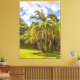 This Stretched Canvas Print features an original photograph of a Senegal date palm, also called reclinata. The beautiful plant spreads out in the sunshine of a Florida sky, with puffy clouds bringing an afternoon shower, making a very relaxing scene.