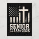 Bold senior class 2026 layout with US flag and cross elements. Great for students proud of their values and ready to graduate strong.