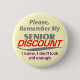 Please Remember My SENIOR DISCOUNT I Know, I don't look old enough Elders Coupons Senior Citizens economy savings coffee restaurants shopping buying Men Women Button