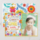 Celebrate your little señorita's first birthday with this colourful and festive Mexican floral folk art invitation. Customise with your favourite photo and party details for a personalised touch.